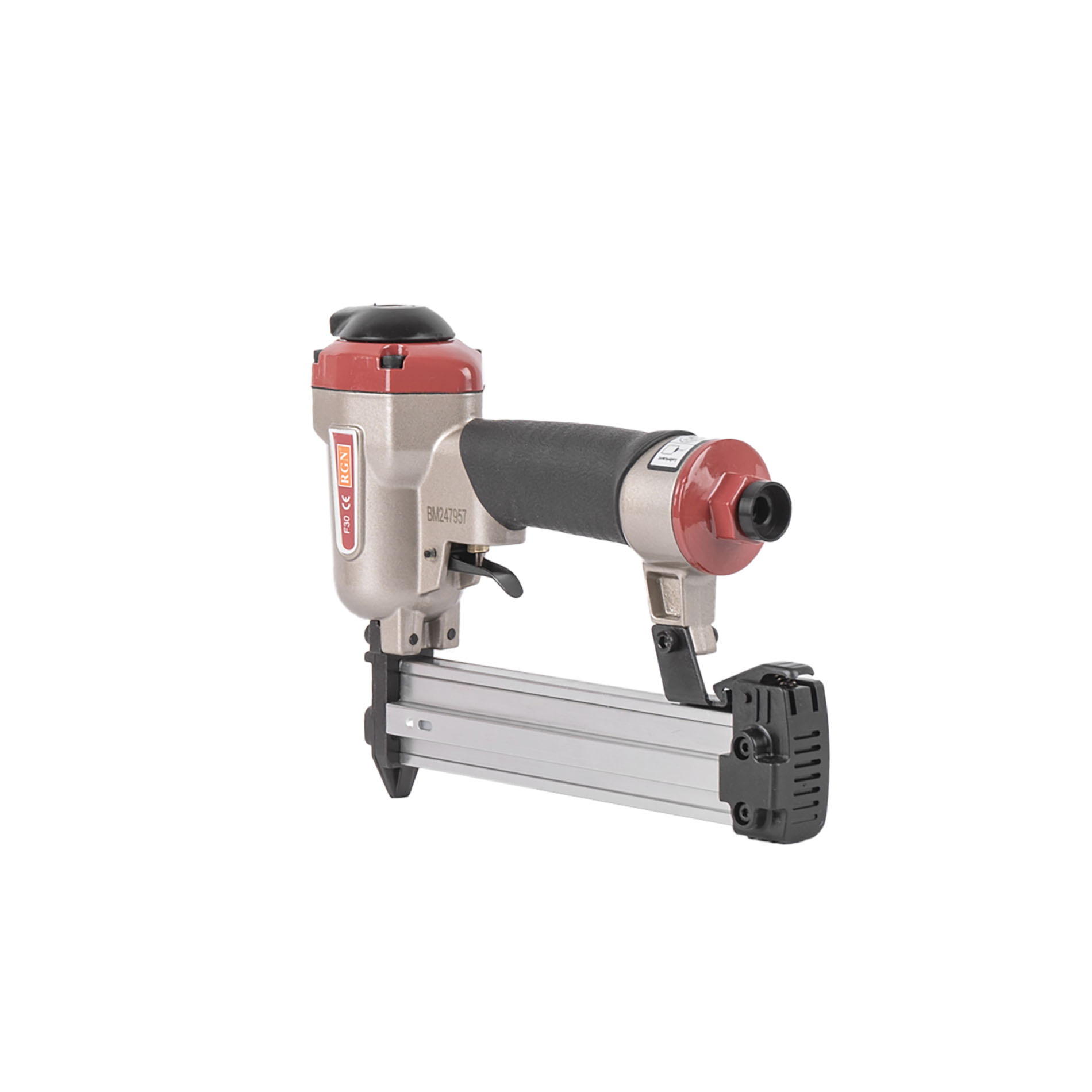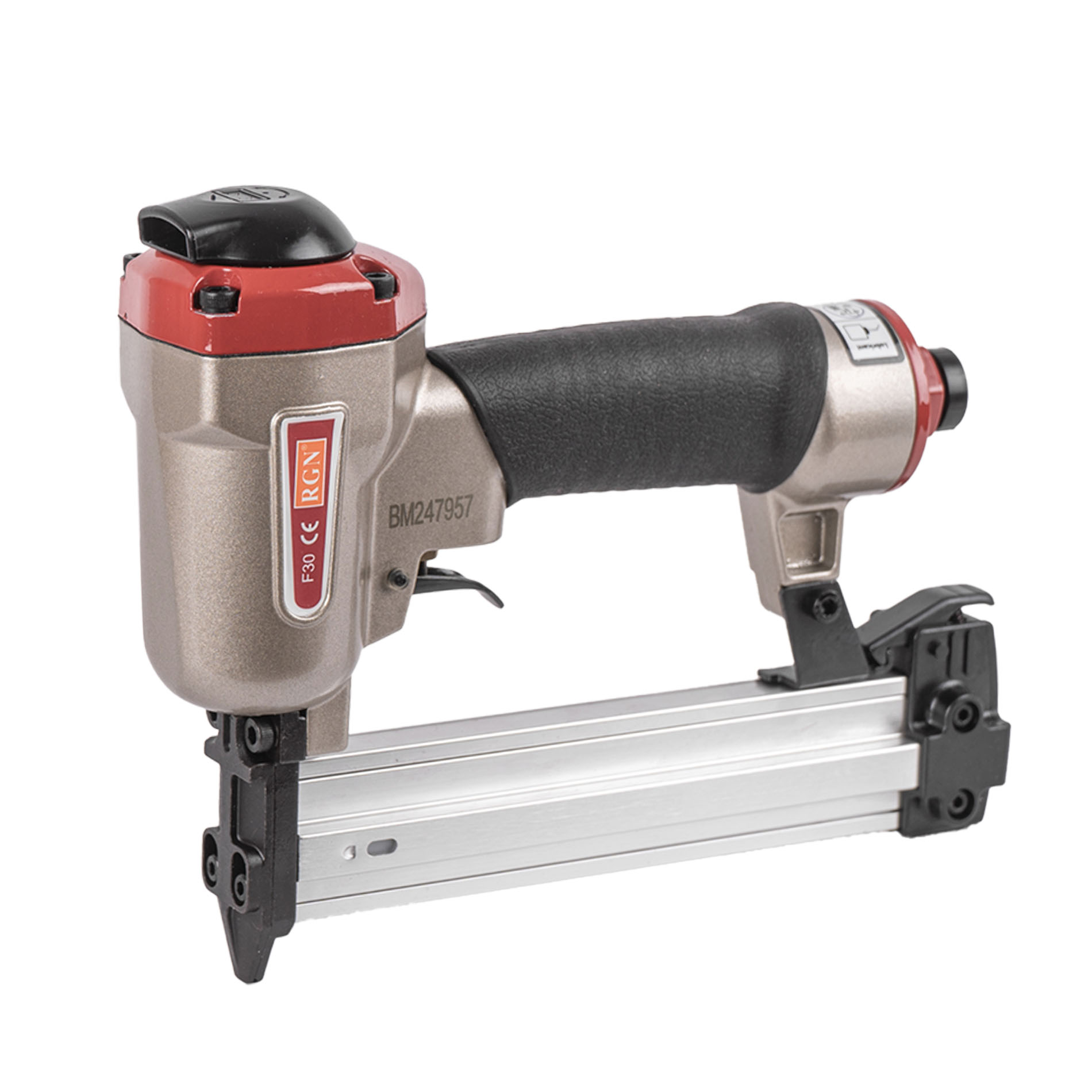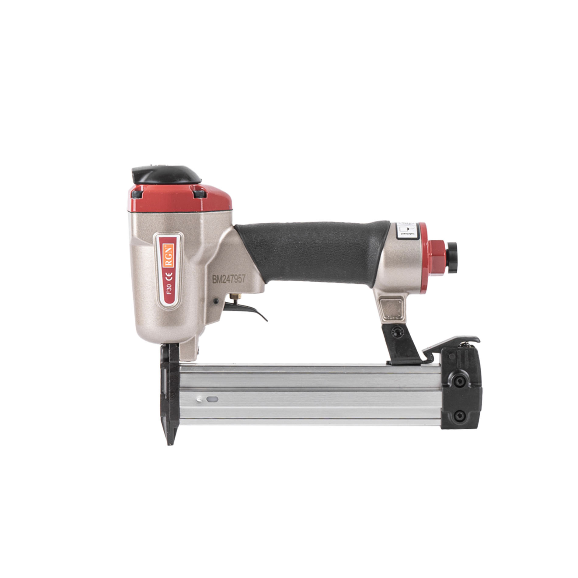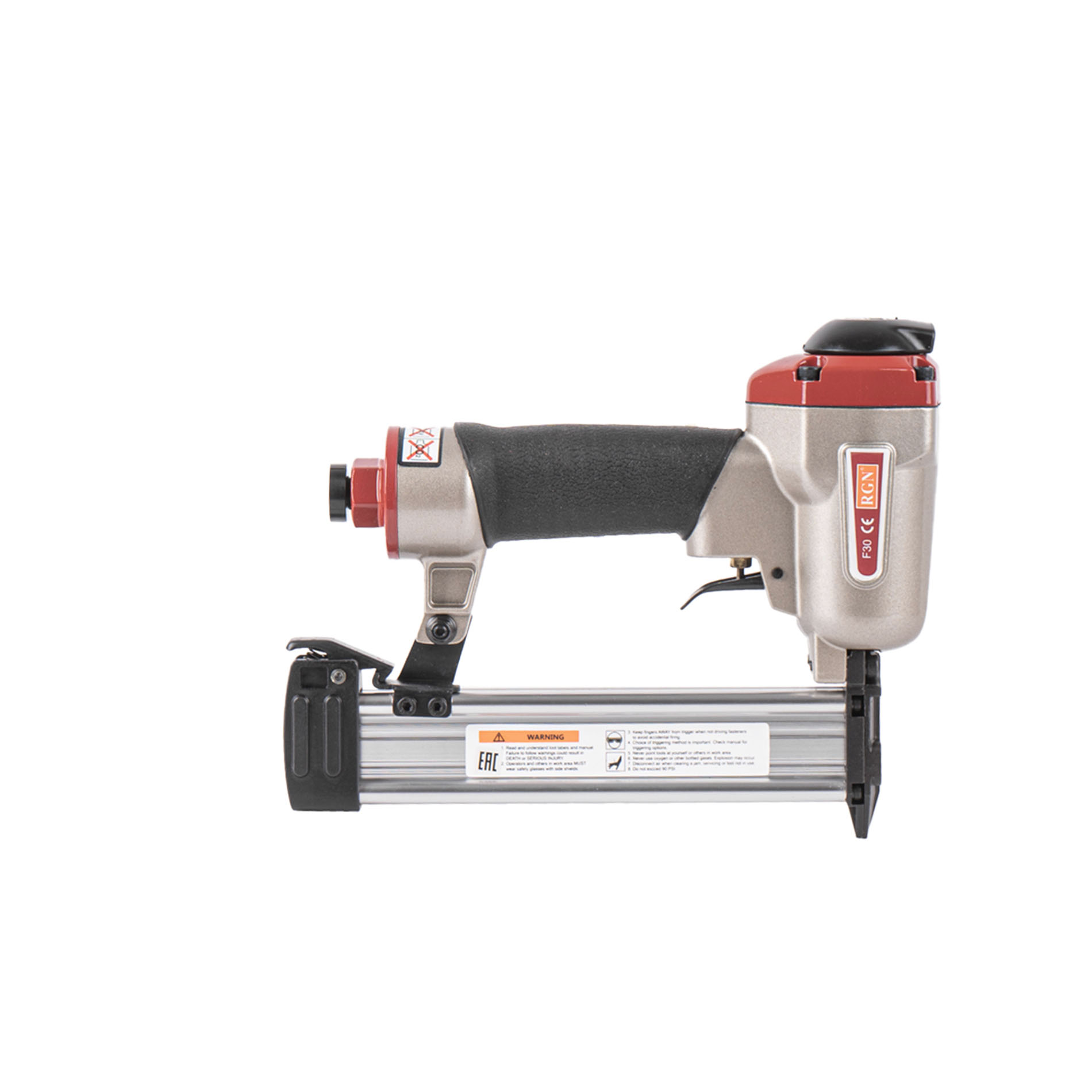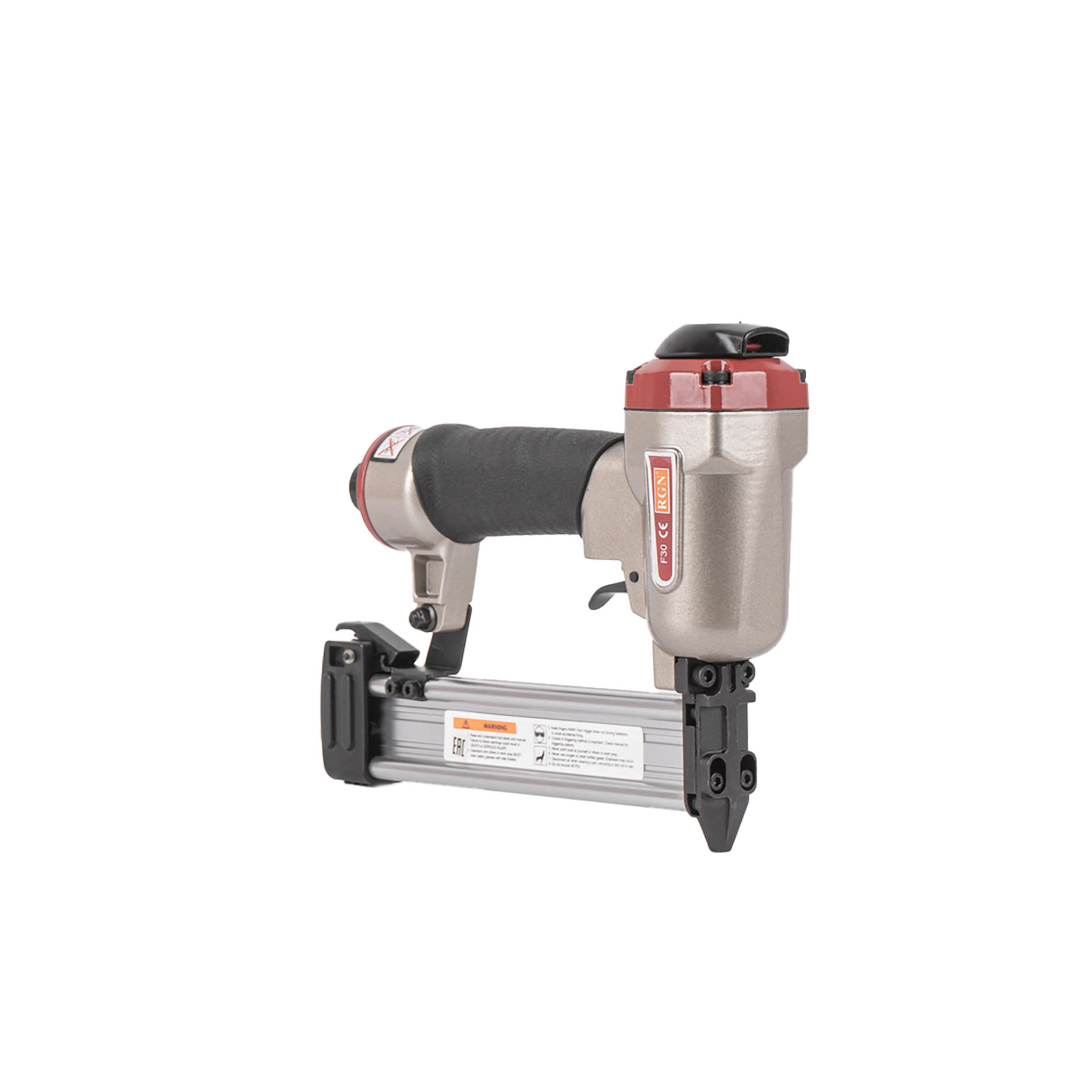 Пневмопистолет для забивания финишных гвоздей (штифтов) длиной 10-30 мм, RGN F30 отличается простотой и надежностью исполнения. Имеет алюминиевые корпус и магазин. Данный штифтозабивной пистолет характеризуется невысокой ценой при высоком качестве изготовления и эксплуатационого ресурса. Емкость магазина штифтозабивателя F30 - 100 финишных (паркетных) гвоздей.