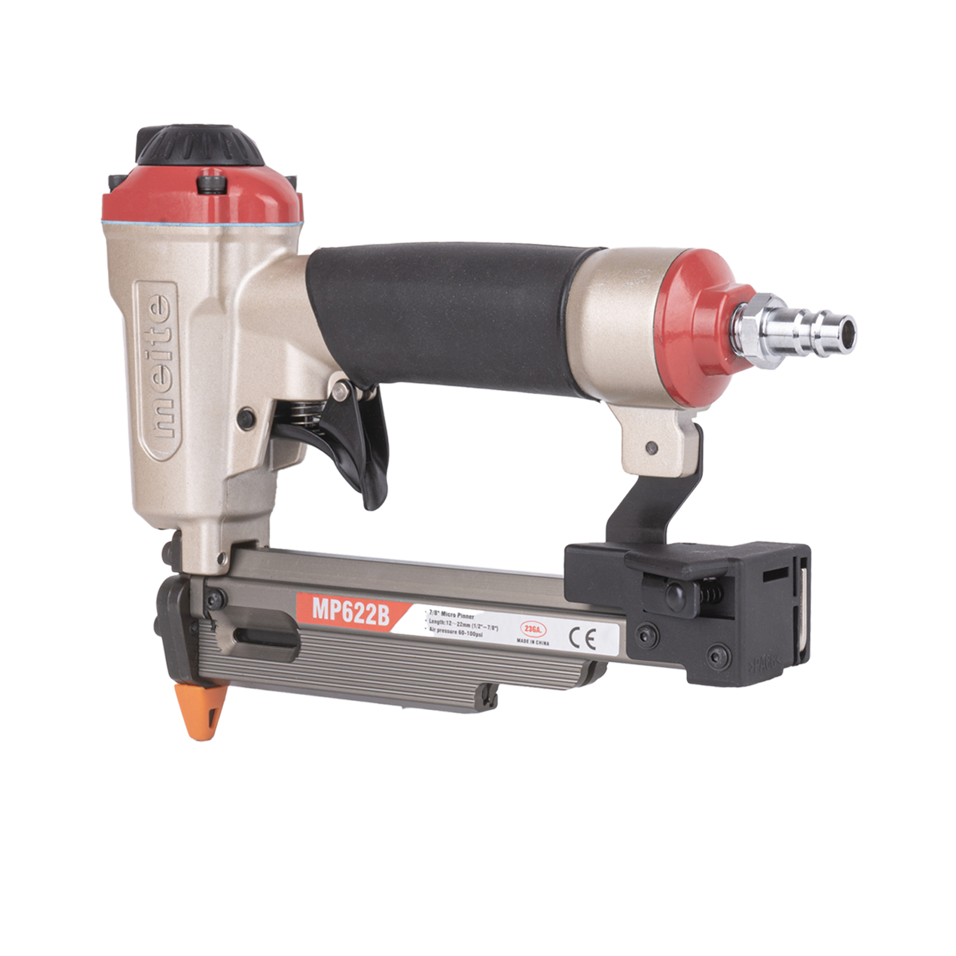 Пневматический шпилькозабивной пистолет meite MP622B предназначен для скрепления некрупных деталей из дерева или пластика и не несущих конструкций. Например, планки, штапики, изготовление картинных и деревянных оконных рам, монтаж молдинга и декора, требующих аккуратного внешнего вида готового изделия. Этот пневматический микрошпилечник применяется с микрошпильками 23GA размером от 10 до 22 мм, которые используются для финишных работ, так как при вбивании не оставляют следа на поверхности.
